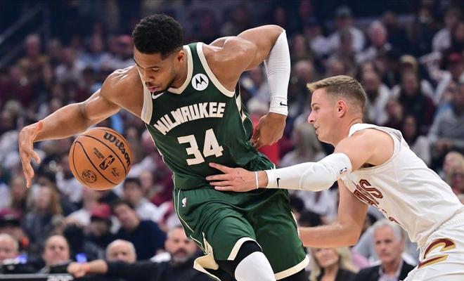 在看字母哥的表现也是拼尽了全力,面对进攻他也是独木难支。