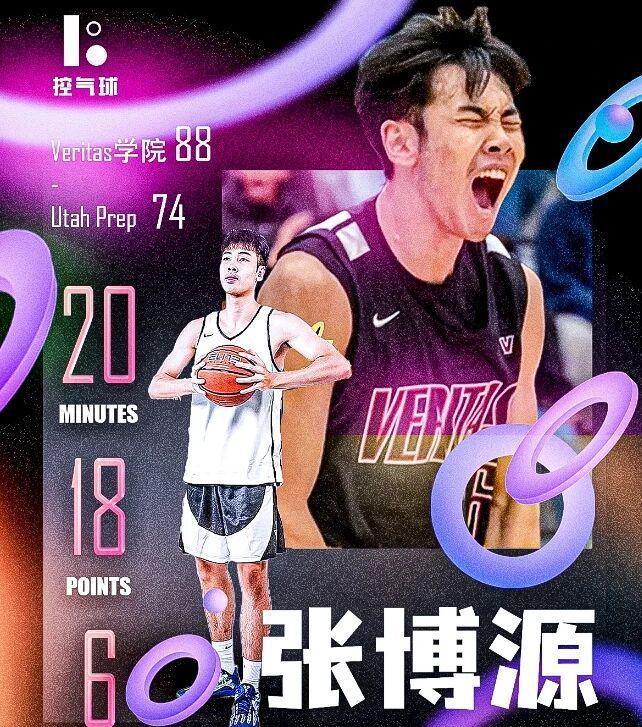 美国最强高中联赛EYBL精英联赛正在进行,在Veritas学院以88-74战胜Utah Prep的比赛中,张博源代表Veritas学院替补出场了20分钟,投篮方面12投7中,其中三分球7中4、罚球1中0,得到了18分6篮板1助攻的数据,拿下全场最佳。从比赛的表现来看,张博源攻防两端的进步非常明显:进攻端加入了掩护内容,无球掩护和跑位都好多了;在防守端有了侧重点,攻转守时不再出现愣神的情况。
