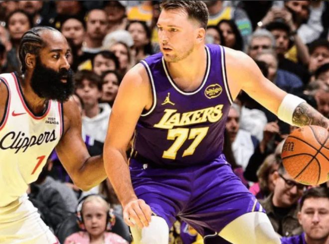 首节比赛,东契奇打满12分钟,投篮14中9、三分8中5狂轰24分1篮板3助攻1盖帽,创造湖人队史首节最高分纪录,也是自科比在2007年后,湖人球员单节最高得分纪录;哈登同样出战12分钟,投篮7中3、三分4中1砍下11分4篮板4助攻。