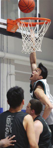 天津男篮昨天进行了一场高强度的对抗教学赛,不过与普通比赛不同的是:全体队员轮番登场,但却不固定是“黑队”还是“白队”。“我们在教学比赛中多尝试各种搭配,比如两个大外援搭档,或者一大一小搭档,然后国内球员如何组合与外援配合,所有这些都要在比赛中看实际效果。”主教练周金利说。