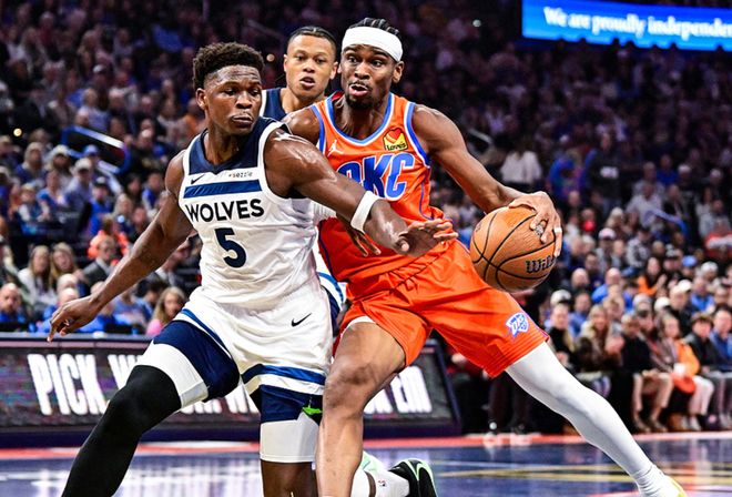 雷霆主场迎战森林狼,雷霆缺少了杰伦、威金斯,森林狼阵容齐整,雷霆长时间领先,一度领先12分,第四节森林狼一度反超比分,但最后几分钟森林狼出现了多次低级失误葬送了比赛,最终雷霆以8分优势击败森林狼。亚历山大19中12得到40分6板6助3断,哈滕10中6得到15分7板2助,森林狼方面爱德华兹19中9得到31分8板5助,香农7中7得到18分2板。