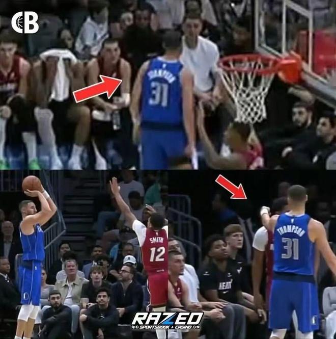 克莱手指上方,意思是球馆上空被退役球衣的名宿