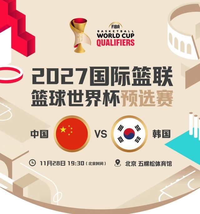 北京时间11月28日晚上19:30,2027年卡塔尔男篮世界杯预选赛全面打响,中国男篮将坐镇主场迎战东亚强敌韩国男篮。主帅郭士强大胆变阵,力拼开门红。央视CCTV5将会直播。