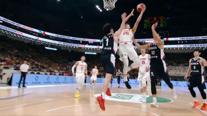 下半场回来,韩国男篮两次突破,将分差拉开到17分!高诗岩攻守两端拼尽全力,李政炫连续的中距离命中,使得中国男篮始终不能缩小比分。张镇麟突破、朱俊龙快攻,韩国男篮及时请求暂停。暂停回来,又是李贤重的致命三分,三节战罢,中国男篮依旧落后9分。