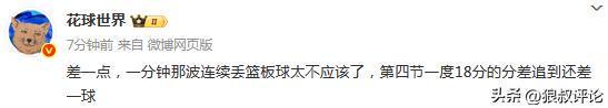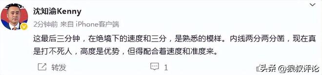 媒体人“沈知渝”发文点评:这最后三分钟,在绝境下的速度和三分,是熟悉的模样。内线两分两分凿,现在真是打不死人,高度是优势,但得配合着速度和准度来。