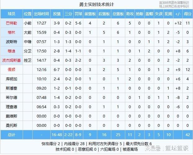勇士数据:佩顿12分5板1助、巴特勒11分6板5助、穆迪6分1板2帽、库明加4分1板2助、波斯特3分1板、波杰姆斯基2分3板2助、斯潘塞2分1板、希尔德2分、格林6板1助、理查德1板