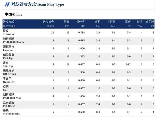 就挡拆持球来看,亚洲杯打了19次,世预赛13次。就低位背身来看,亚洲杯3次,世预赛9次。就定点进攻来看,亚洲杯22次,世预赛18次。就空切来看,亚洲杯13次,世预赛3次。就快攻来看,亚洲杯7次,世预赛21次。