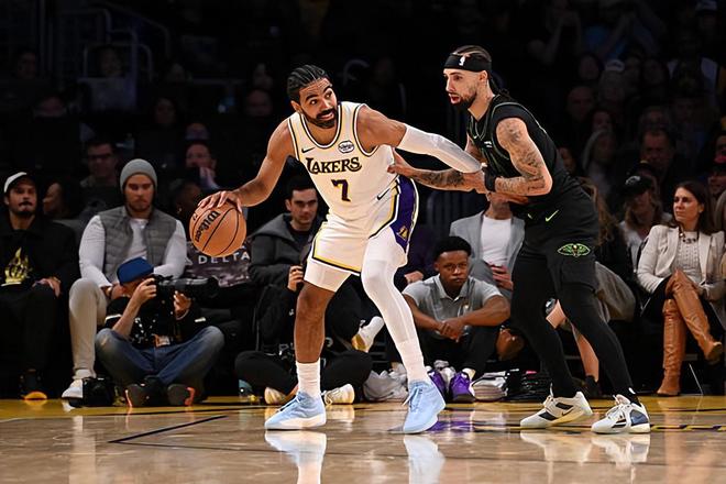 本场比赛中,湖人的先发后场大将盖布-文森特(Gabe Vincent)也算是起到了自己应该起到的作用。文森特全场出场24分43秒,投篮5中2,三分线外4中2,得到了6分2篮板4助攻1抢断的数据,还有3次犯规,正负值则是达到了全场最高的+15。文森特在本场比赛中也是在进攻端起到了一定的作用,他命中了两记三分,他也展现出了一定的传球能力和策应能力,他在进攻端确实是给球队提供了一定的支持。不仅如此,文森特在防守端的表现也是值得肯定的,他也能够发挥出自己在防守端的作用。至少在本场比赛中,文森特扮演好了自己的作用,在攻防两端都为球队提供了不少的帮助并且为球队的胜利做出了自己的贡献。