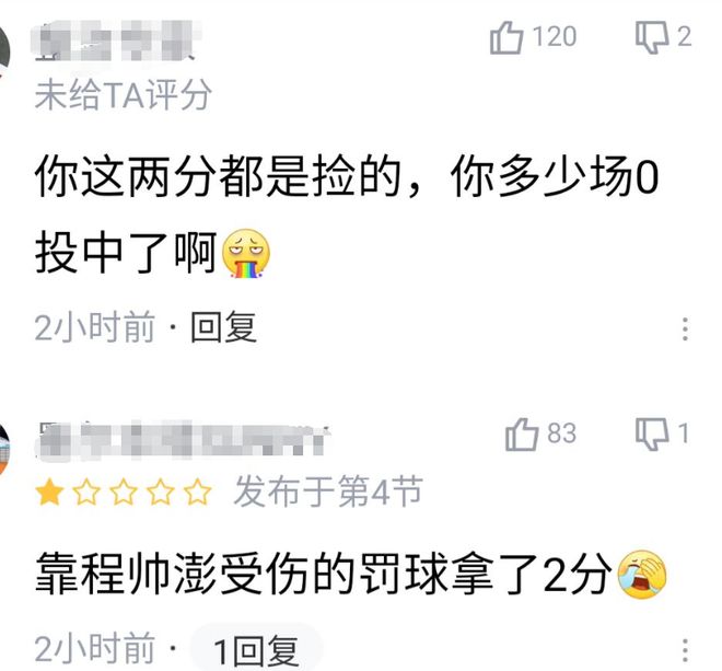 其中要说最为杀人诛心的评论无疑是这几条:你这2分都是捡的,靠程帅澎的受伤罚球才拿了2分!