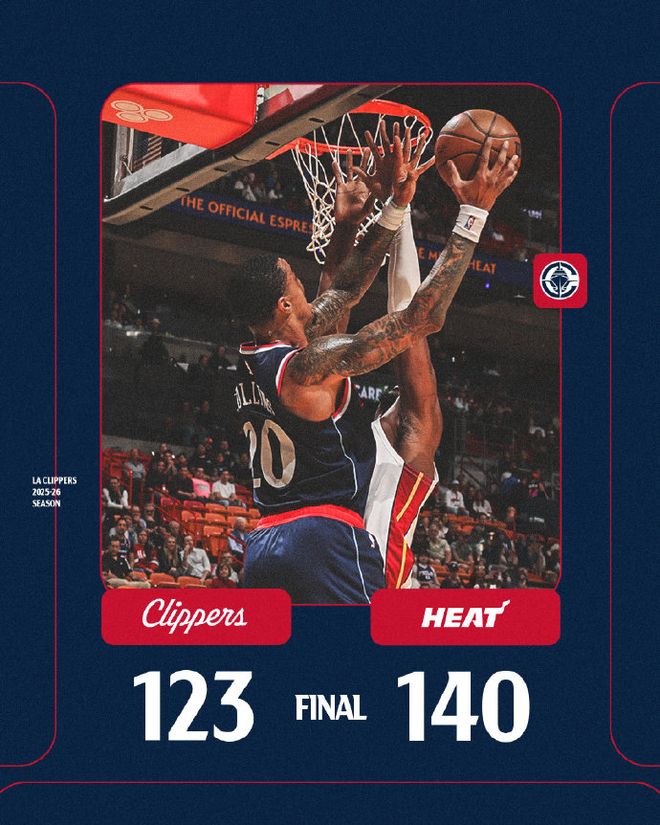 北京时间12月2日,NBA常规赛快船客场对阵热火,热火一边倒碾压快船一度打出32-4攻势,且最多时刻扩大38分领先优势。快船早早投降认输,最终快船123-140遭热火赛季双杀吞5连败,快船新赛季21战16败。