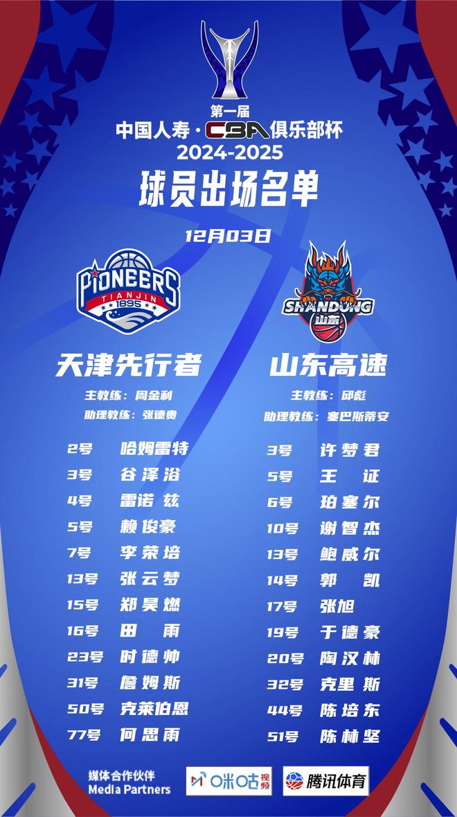 北京时间12月3日,CBA2025-26赛季俱乐部杯首个比赛日即将打响,CBA官网更新杯赛球队大名单。