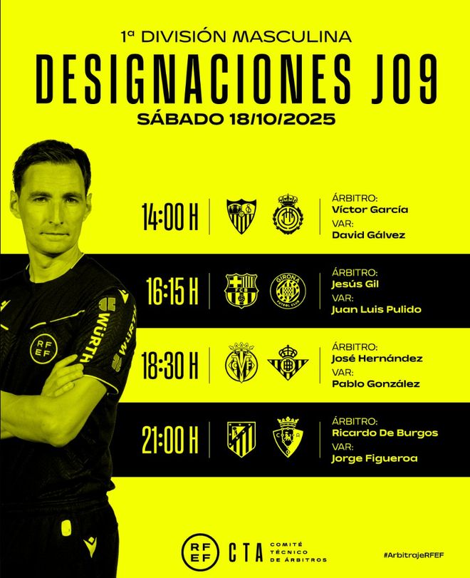 雷速体育10月17日讯 西班牙足协官方公布了西甲第9轮的部分裁判选派情况,其中巴萨与赫罗纳的比赛将由吉尔·曼萨诺执法。而上赛季国王杯决赛主裁判德布尔戈斯则将执法马竞对阵奥萨苏纳。