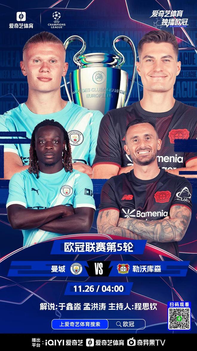 欧冠联赛阶段第5轮,曼城坐镇主场迎战勒沃库森,蓝月亮能否斩获欧冠三连胜?