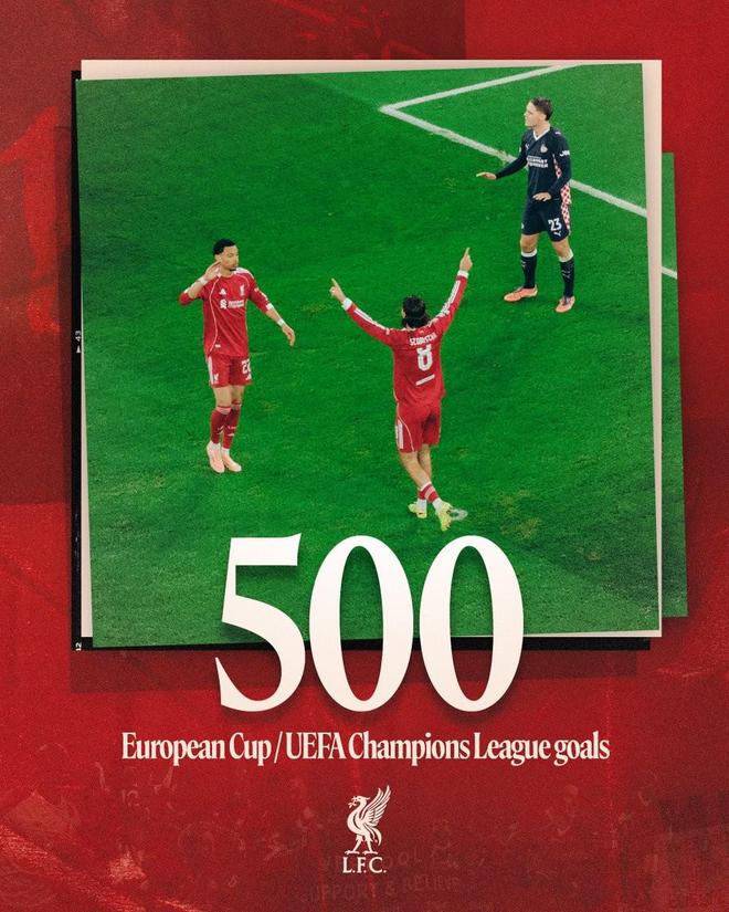 据统计,这是利物浦队史欧洲冠军杯/欧冠联赛第500球。