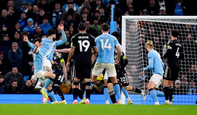 补时第1分钟,切尔基右路横传,在几乎得不到射门空间的情况下,福登横向连过2人之后左脚强行起脚,皮球直入死角。