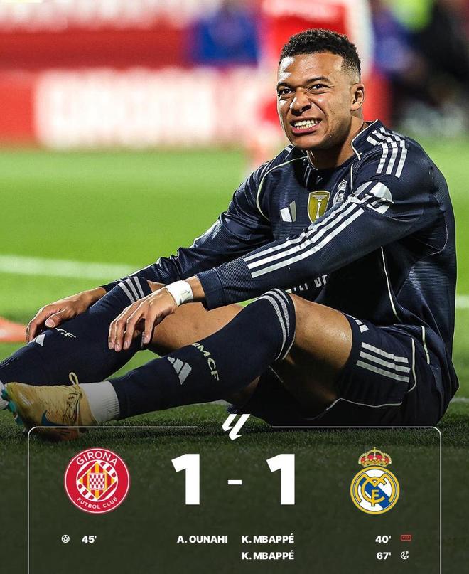 皇马又再一次在大苦主赫罗纳身上丢分,就算姆巴佩再神勇也是无用功,依旧未能打破魔咒。北京时间12月1日凌晨,皇家马德里远扑客场挑战赫罗纳,主队上半场由欧纳希打破僵局,下半场维尼修斯造点,姆巴佩点射建功,最终皇马1-1爆冷,不仅丢掉2分,也把西甲积分榜榜首宝座亲手让给巴萨;与此同时,皇家贝蒂斯2-0塞维利亚,一波七场不败让他们杀回欧战区,并继续向前四发起冲击。两支安达卢西亚球队,皇马与贝蒂斯,在这一轮呈现了截然相反的结局。