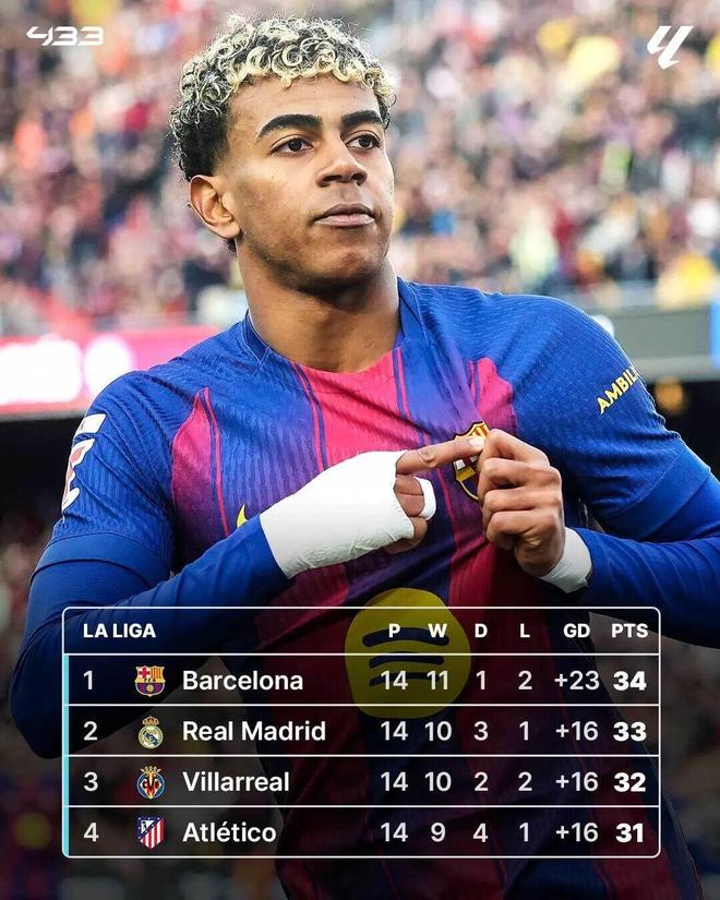 不仅如此,三连平之后,皇马也丢掉了西甲榜首的位置,被巴萨反超登顶。