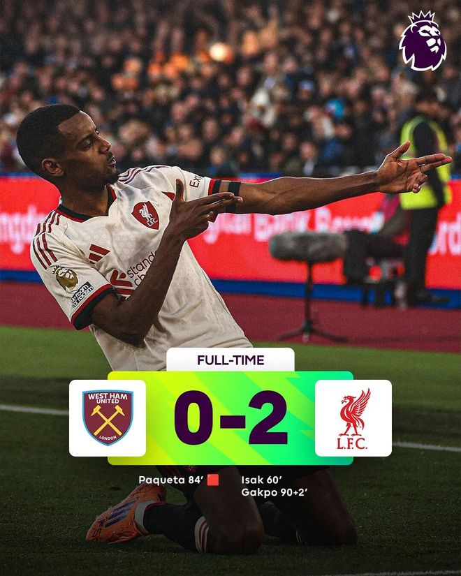 此役,双方上半场互交白卷,比赛僵局一直到下半场第60分钟才被打破,伊萨克打进加盟红军生涯的首个英超进球。