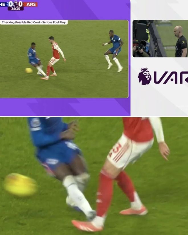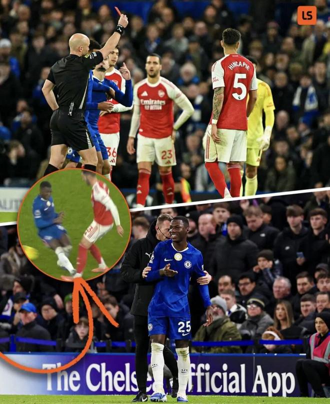 凯塞多在一次拼抢中,踩踏梅里诺,主裁判在经过VAR回放之后,直接出示红牌将其罚下,蓝军得不得在主场10人迎战。