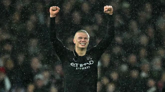哈兰德打破了阿兰希勒(124场)保持的英超最快100球纪录,仅仅用时111场。