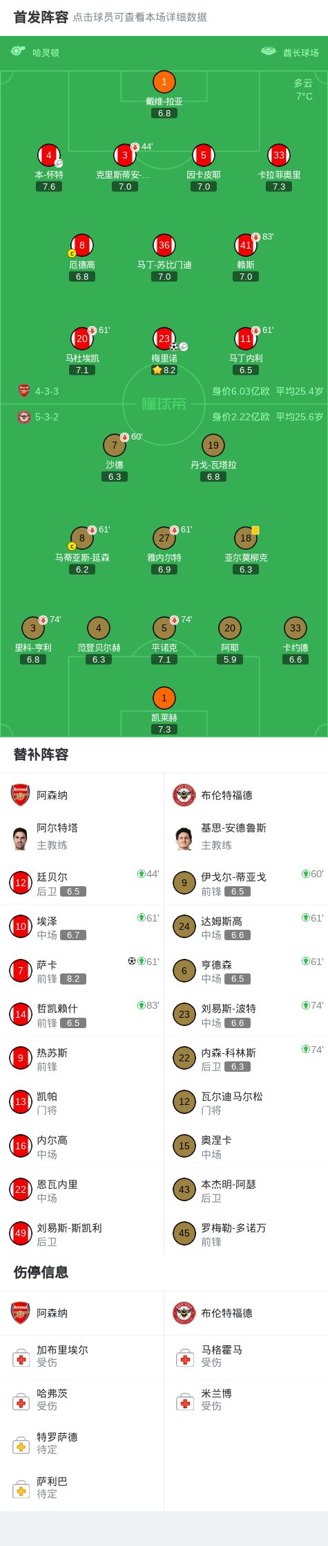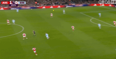 第11分钟,本-怀特送出传中,梅里诺头球破门!阿森纳1-0布伦特福德